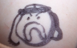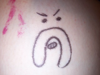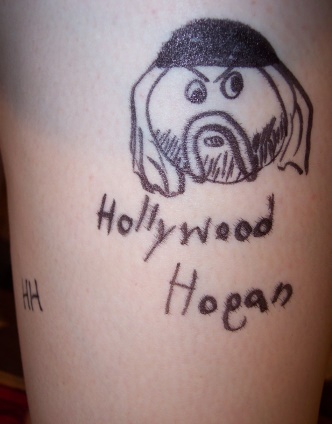 It wasn't long before a Hollywood Hogan appeared. Hulkamania has taken over my body (and I can't draw "g" upside down).