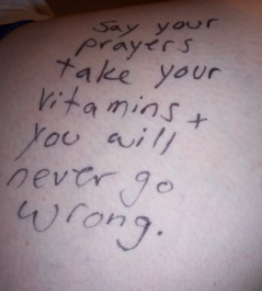 The next morning I saw the start of a trash talk forming on my left thigh.